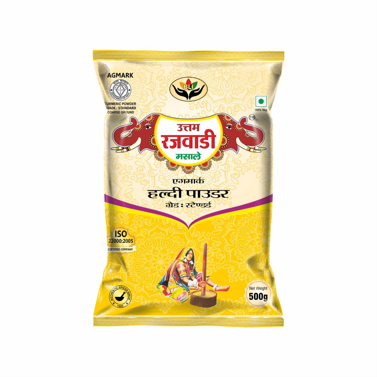 UTTAM RAJWADI MASALE Haldi Powder is crafted from premium, naturally sun-dried turmeric roots, known for their vibrant yellow colour and earthy, soothing aroma. Finely ground for smooth texture, this haldi powder effortlessly blends into curries, dals, sabzis, kadhi, and pickles — adding rich colour, authentic flavour, and natural goodness.