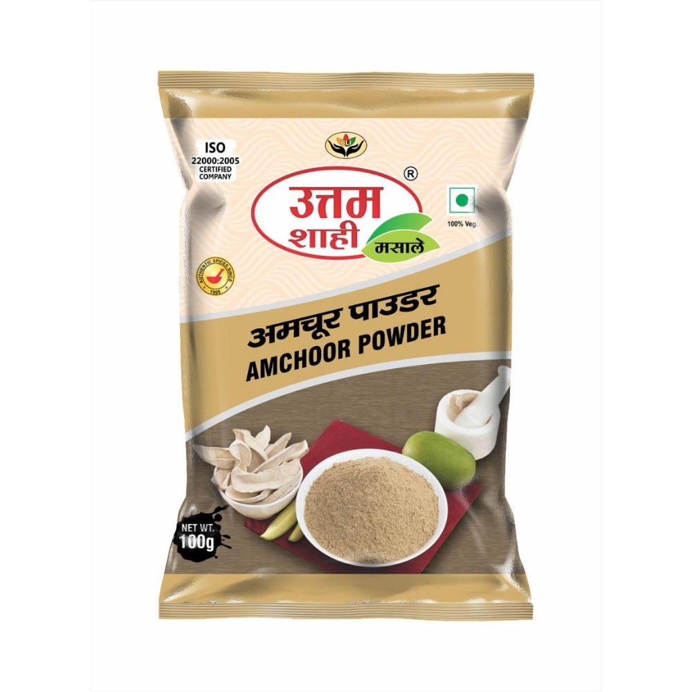 UTTAM SHAHI MASALE Amchoor Powder kachhe aam se bana ek premium-quality tangy spice hai jo kisi bhi dish me perfect khattapan aur refreshing flavour add karta hai. Yeh finely ground, aromatic powder Indian cooking me taste enhance karne ke liye kaafi popular hai.